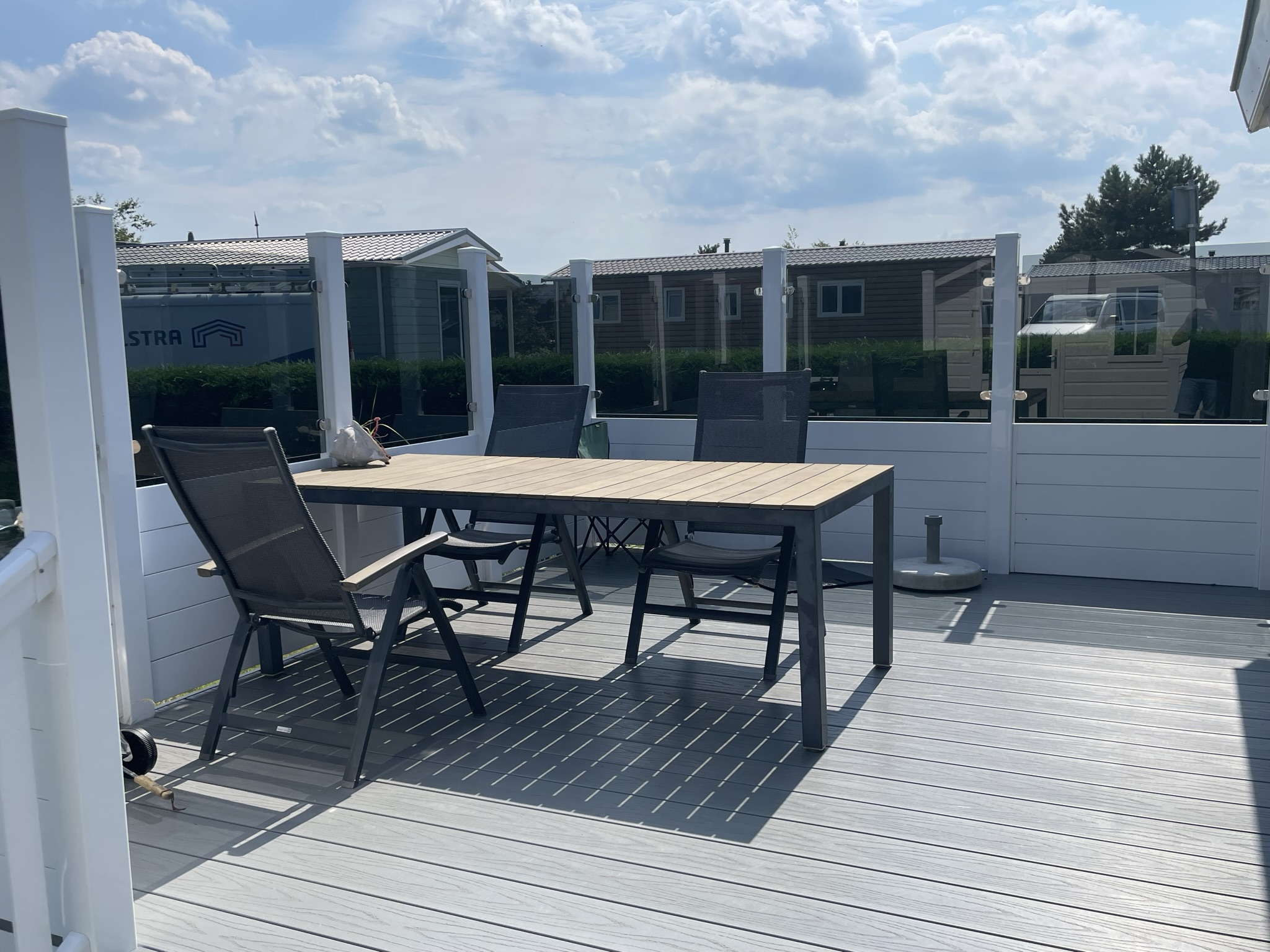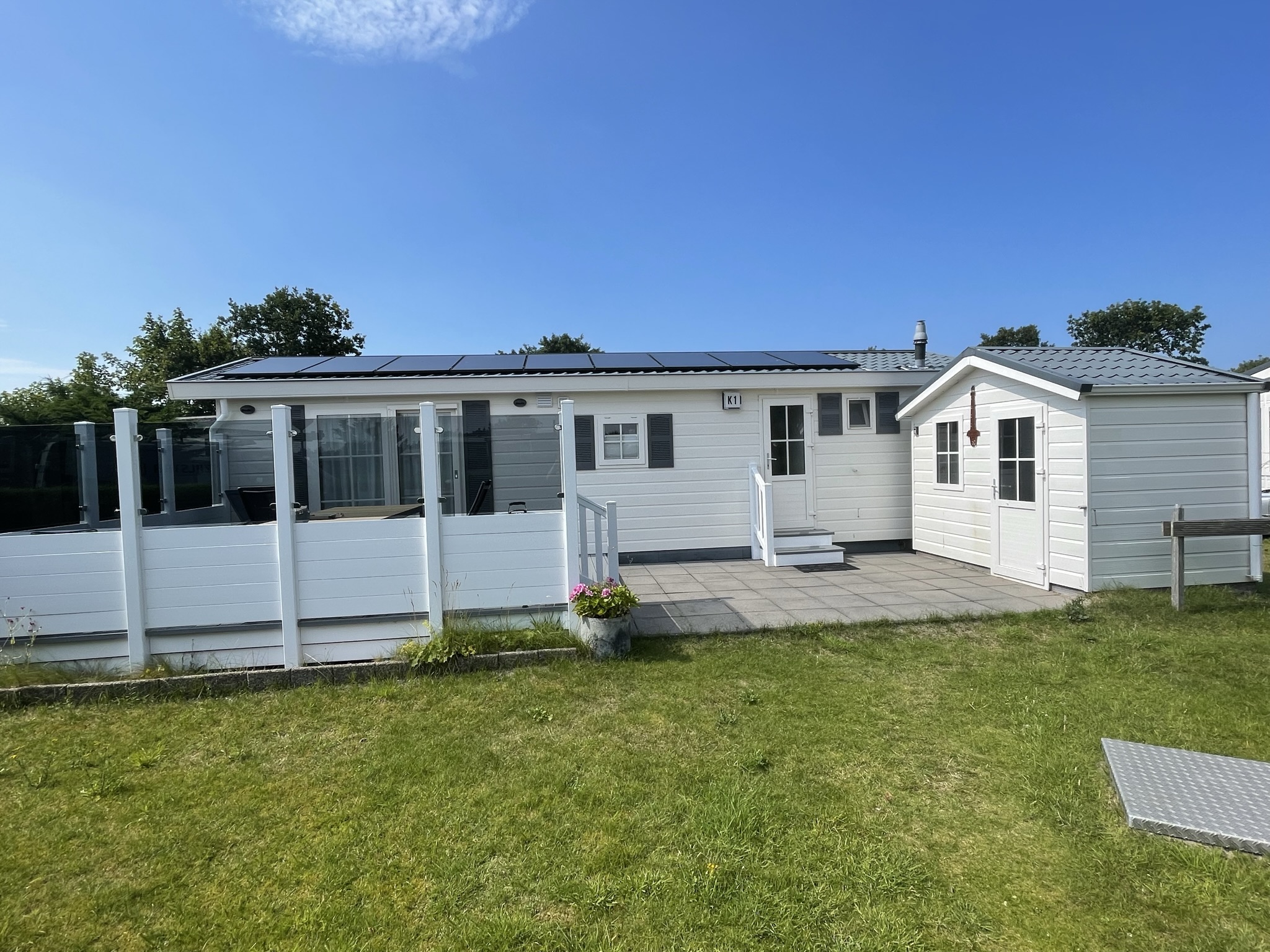 Bekijk hier hoe ons chalet eruit ziet. Op de foto zie je het terras en de tuin, een fijne plek om te ontspannen na een dag op het strand of in de duinen. Scroll verder voor foto’s van de woonkamer, keuken en slaapkamers, zodat je een compleet beeld krijgt van je verblijf.